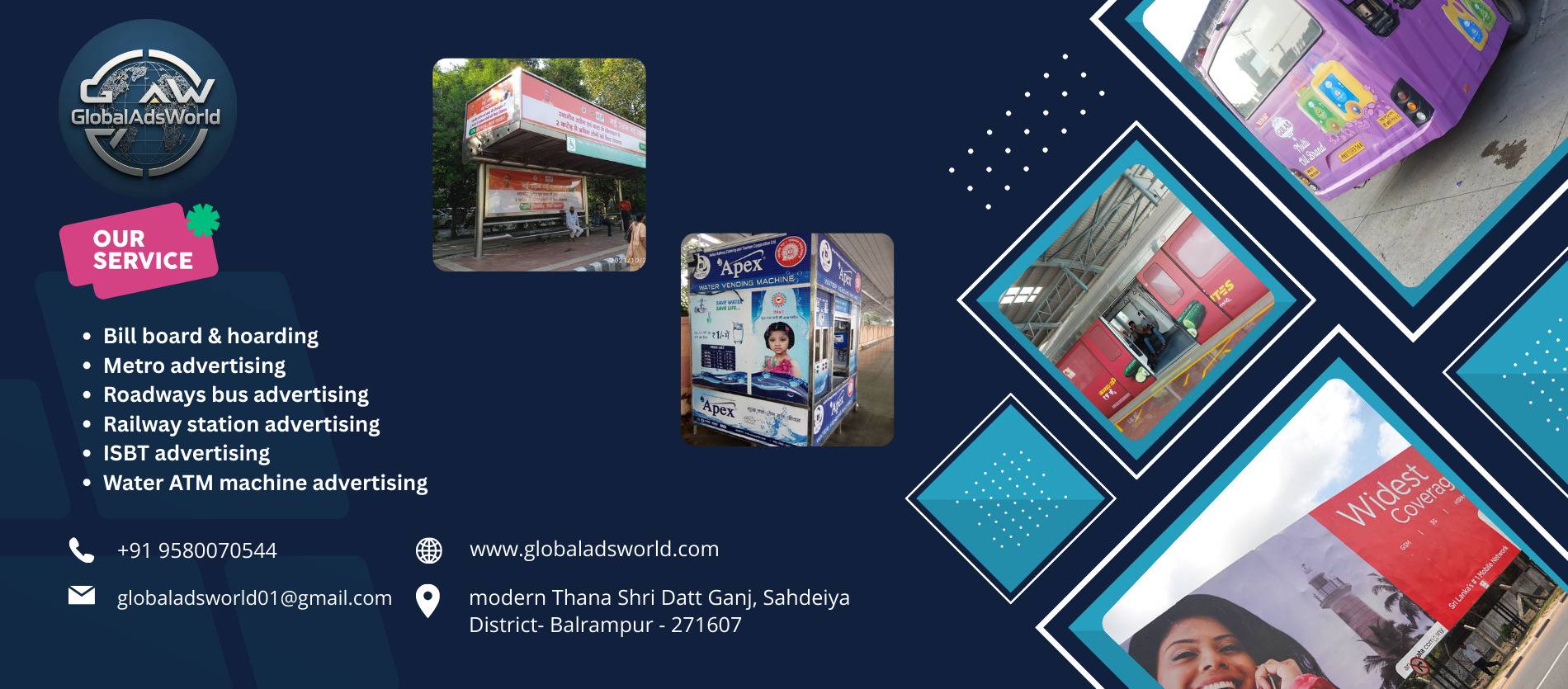 Global ads world is one of the fastest-growing and most trusted advertising agencies in Uttar pradesh, specializing in outdoor advertising, publicity, and printing solutions. With a strong presence across Uttar pradesh, uttrakhand, Himachal Pradesh and Bihar, we have been delivering impactful advertising campaigns for over 25 years.